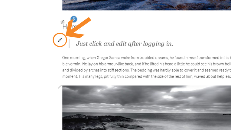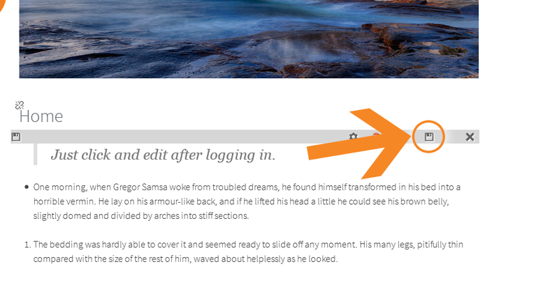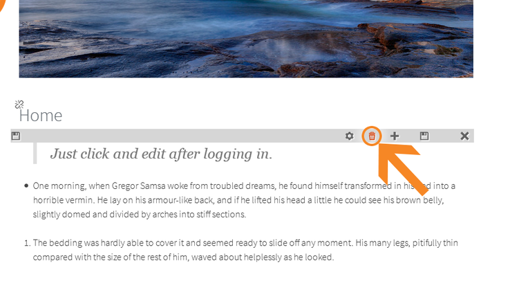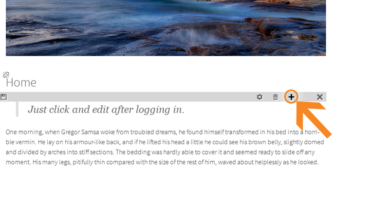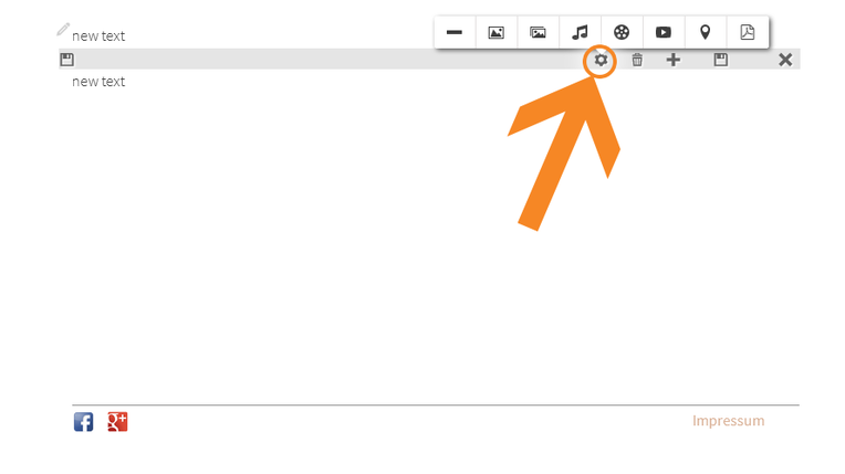 Um die Art des Objekts zu ändern, klicken Sie auf das Zahnrad-Symbol und Wählen Sie eine Kategorie aus. (Überschrift, Bild, Galerie, MP-3 Player, Video, Youtube-Video, Google Maps, PDF)