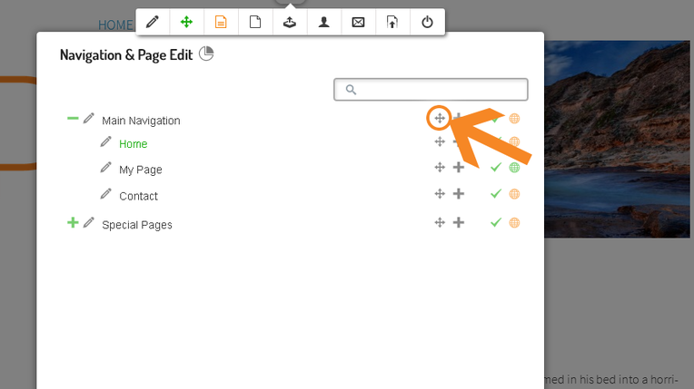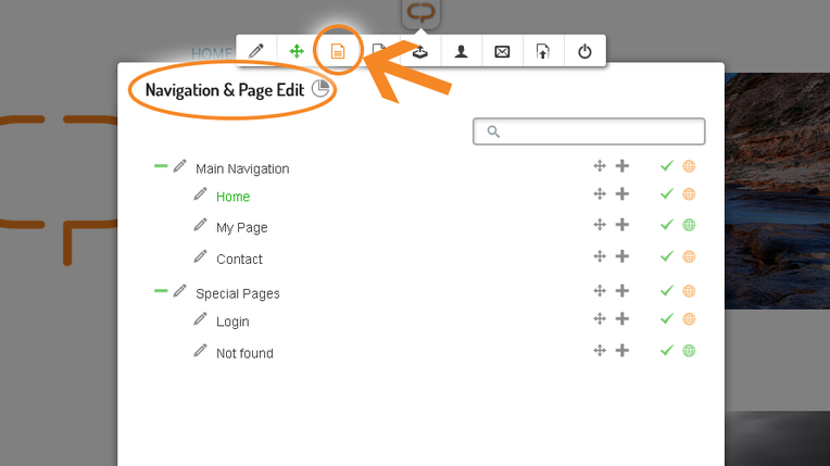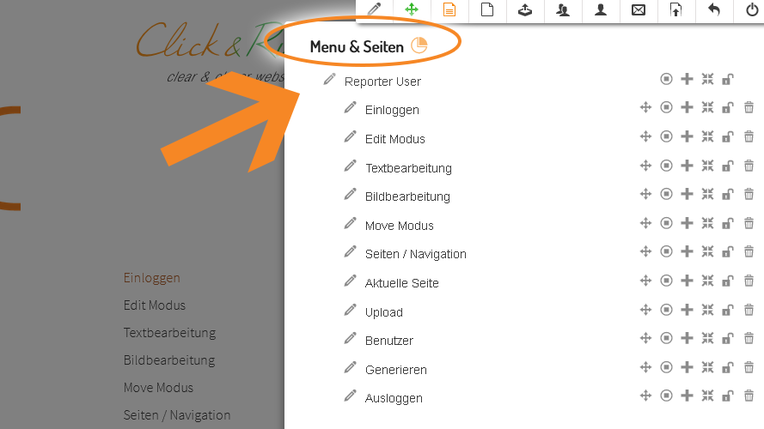 Im Navigationsmenü finden Sie eine Übersicht Ihrer Unterseiten und können diese ganz einfach bearbeiten und verschieben.
